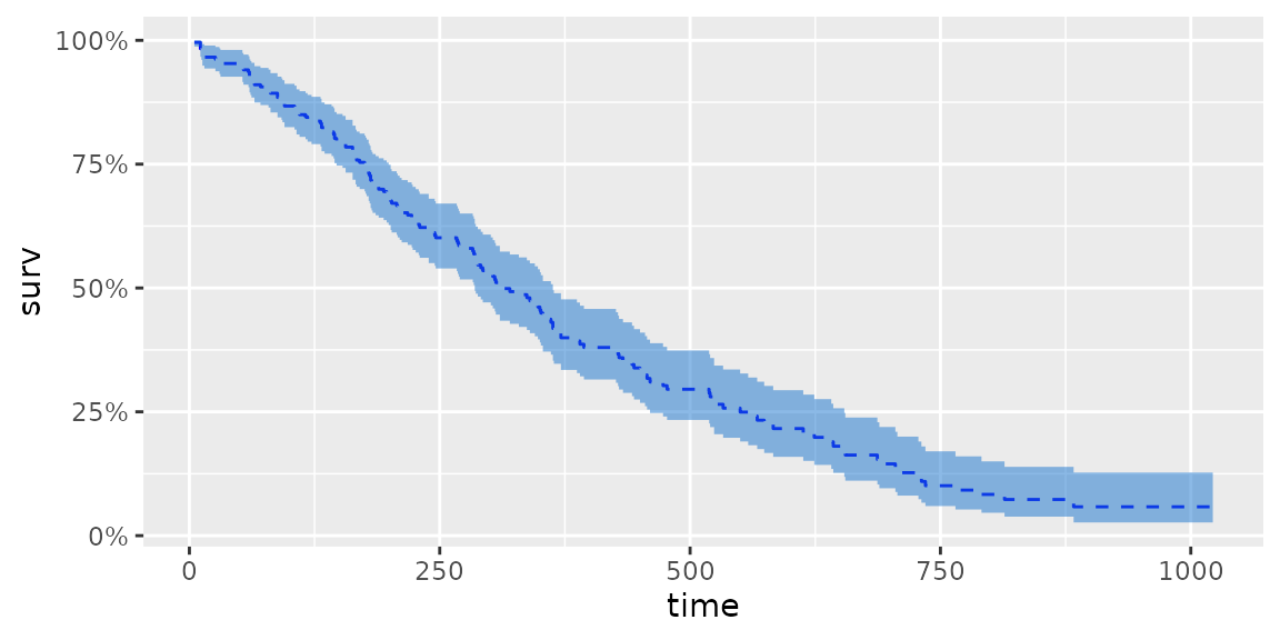 autoplot(d.coxph, surv.linetype = 'dashed', surv.colour = 'blue',