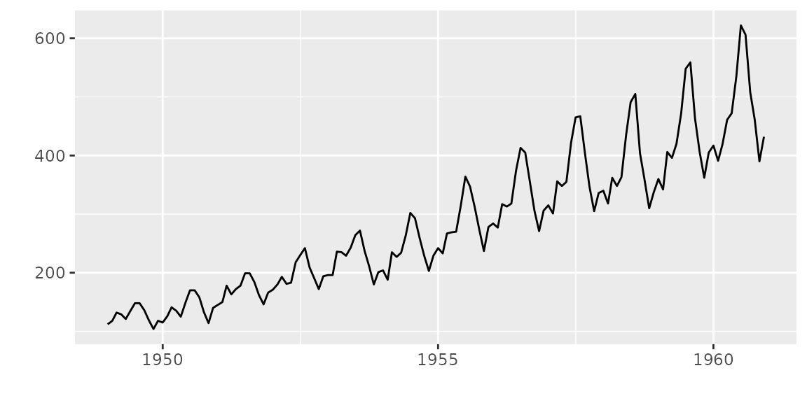 autoplot(as.xts(AirPassengers), ts.colour = 'green')