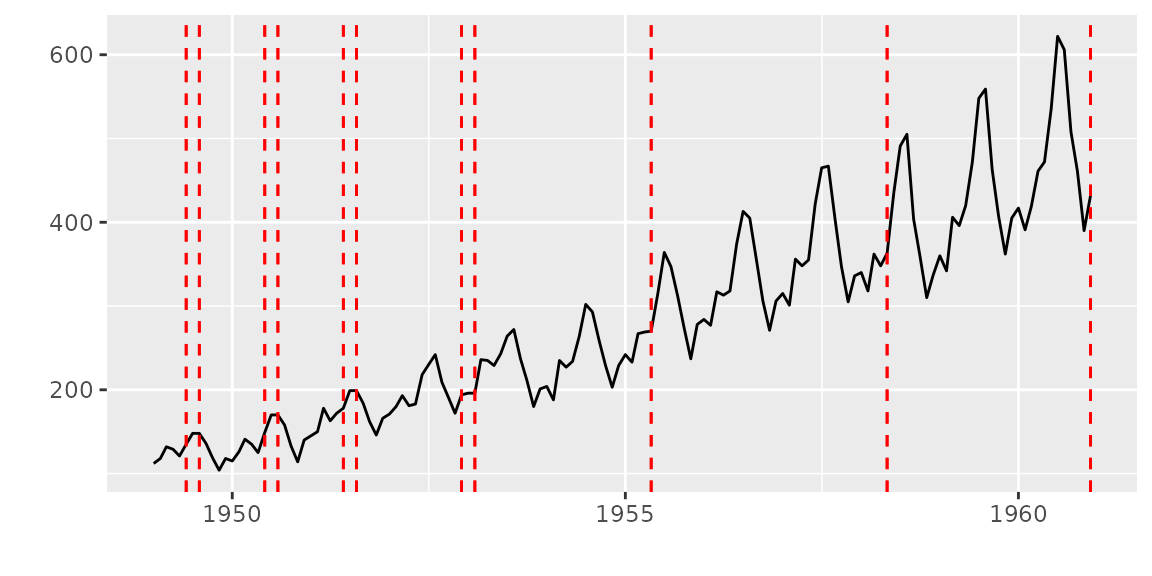 autoplot(cpt.meanvar(AirPassengers))