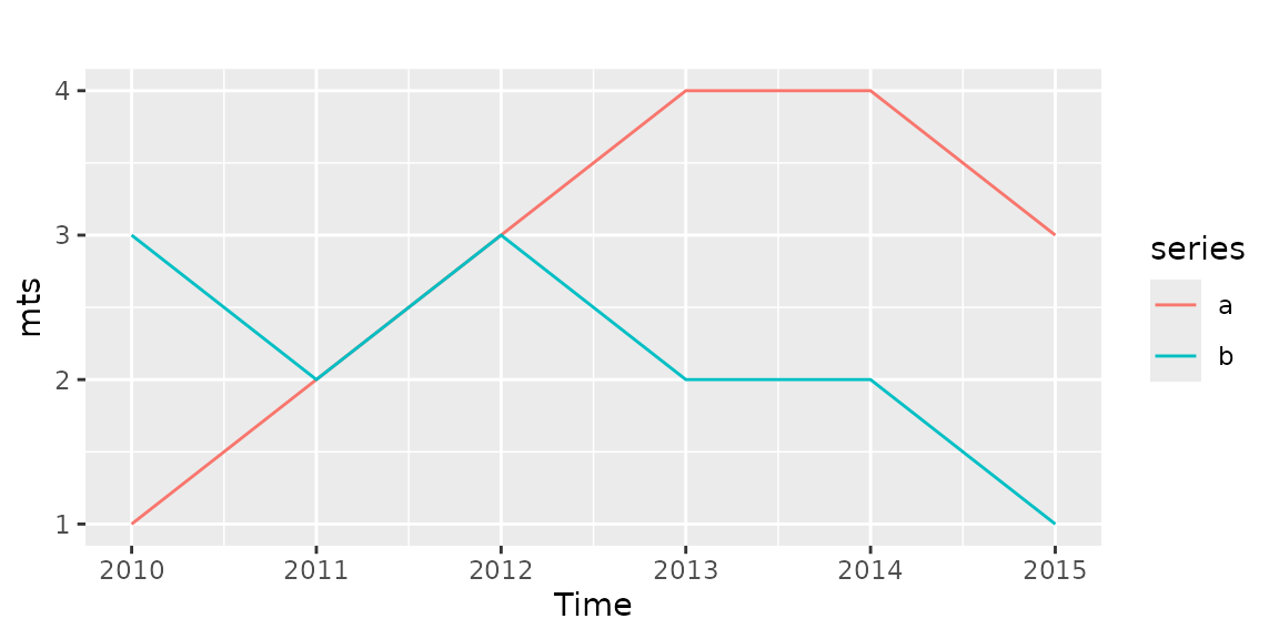 mts <- ts(data.frame(a = c(1, 2, 3, 4, 4, 3), b = c(3, 2, 3, 2, 2, 1)), start = 2010)
