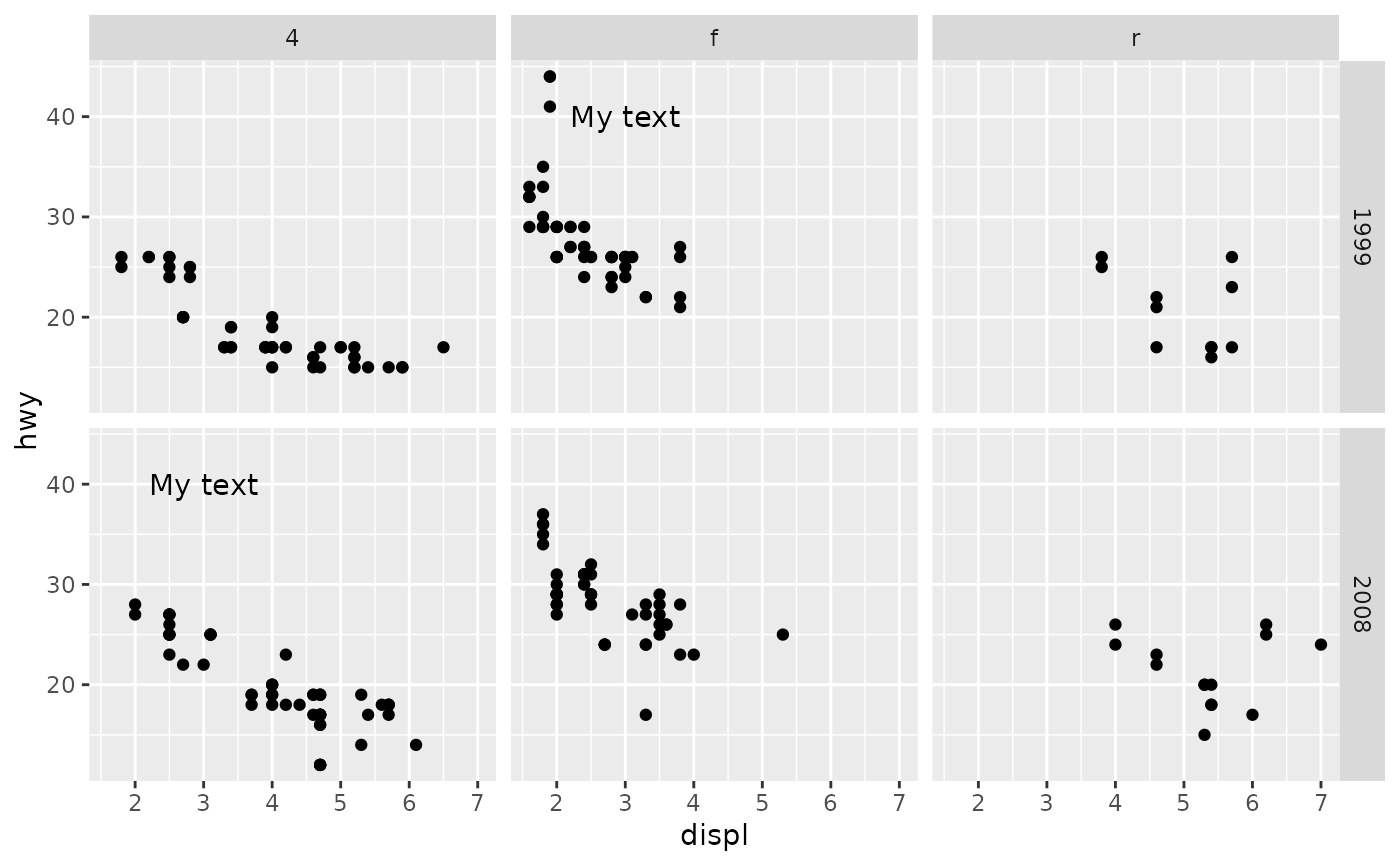 anno <- annotate("text", x = 3, y = 40, label = "My text")