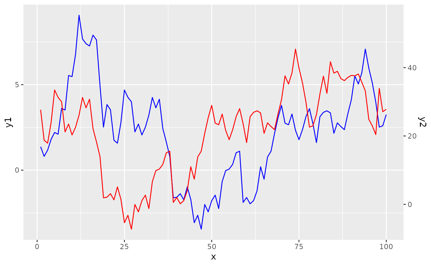 y2 = 10 + tail(dat, n) * 5 # offset and scale y2