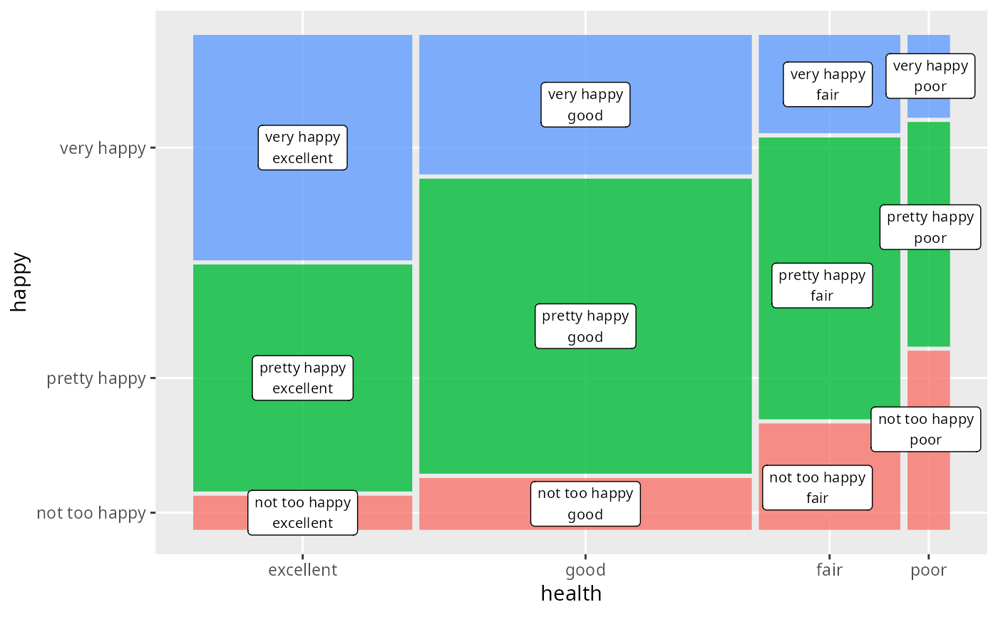 geom_mosaic_text(aes(x = product(happy, health)), na.rm = TRUE, repel = TRUE)