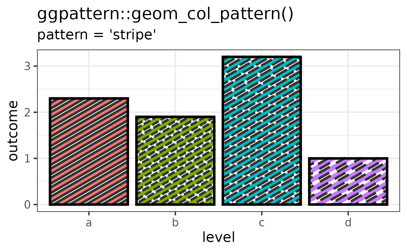 aes(level, outcome, pattern_fill = level, pattern_linetype = level),
