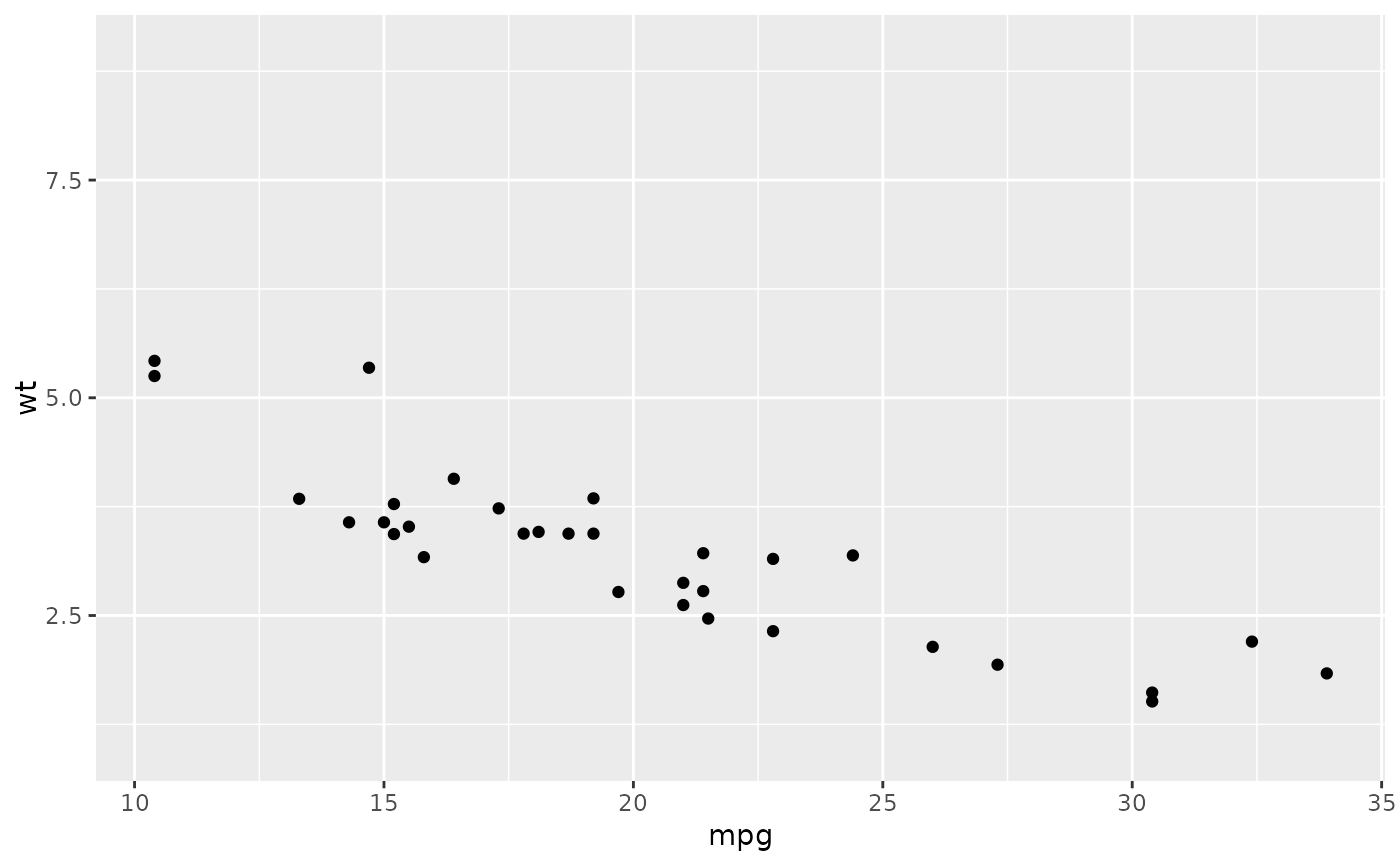 expand_limits(...)p <- ggplot(mtcars, aes(mpg, wt)) + geom_point()