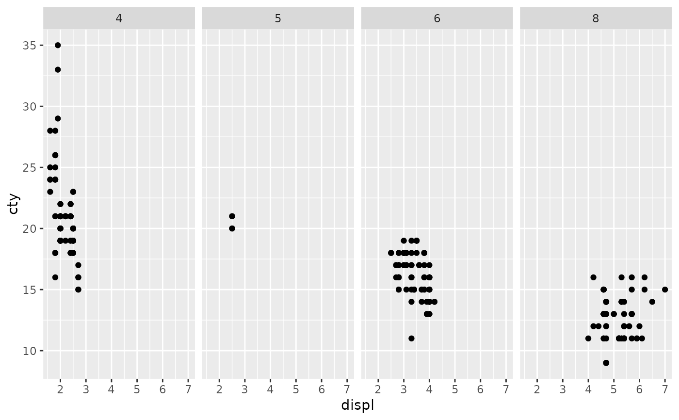 facet_grid(cols = vars(cyl)) +