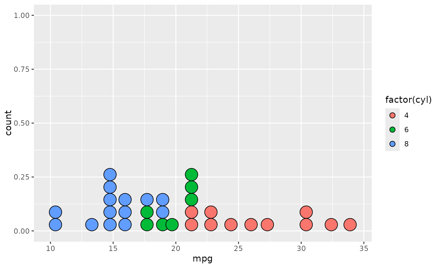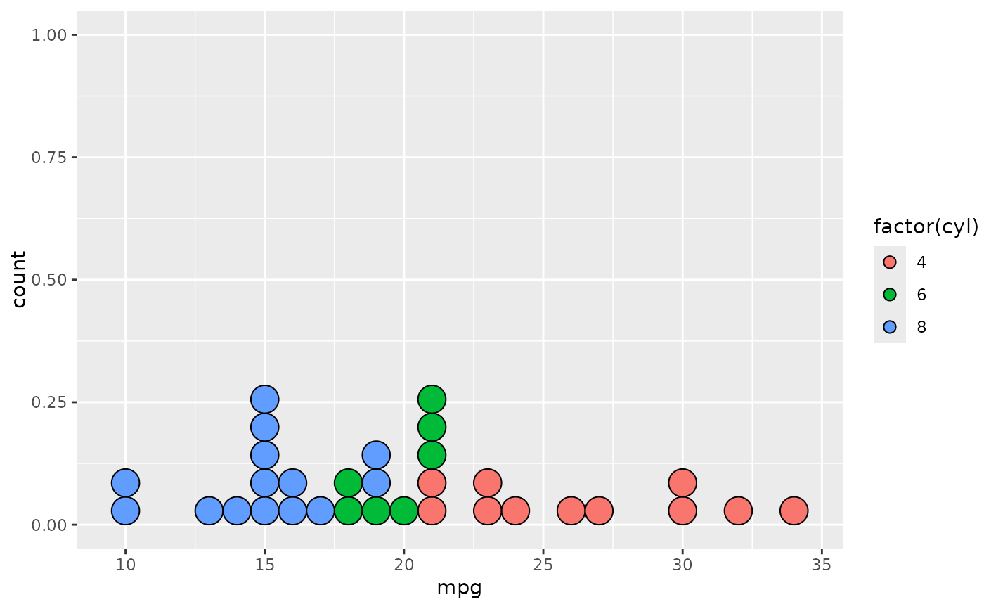 geom_dotplot(stackgroups = TRUE, binwidth = 1, method = "histodot")