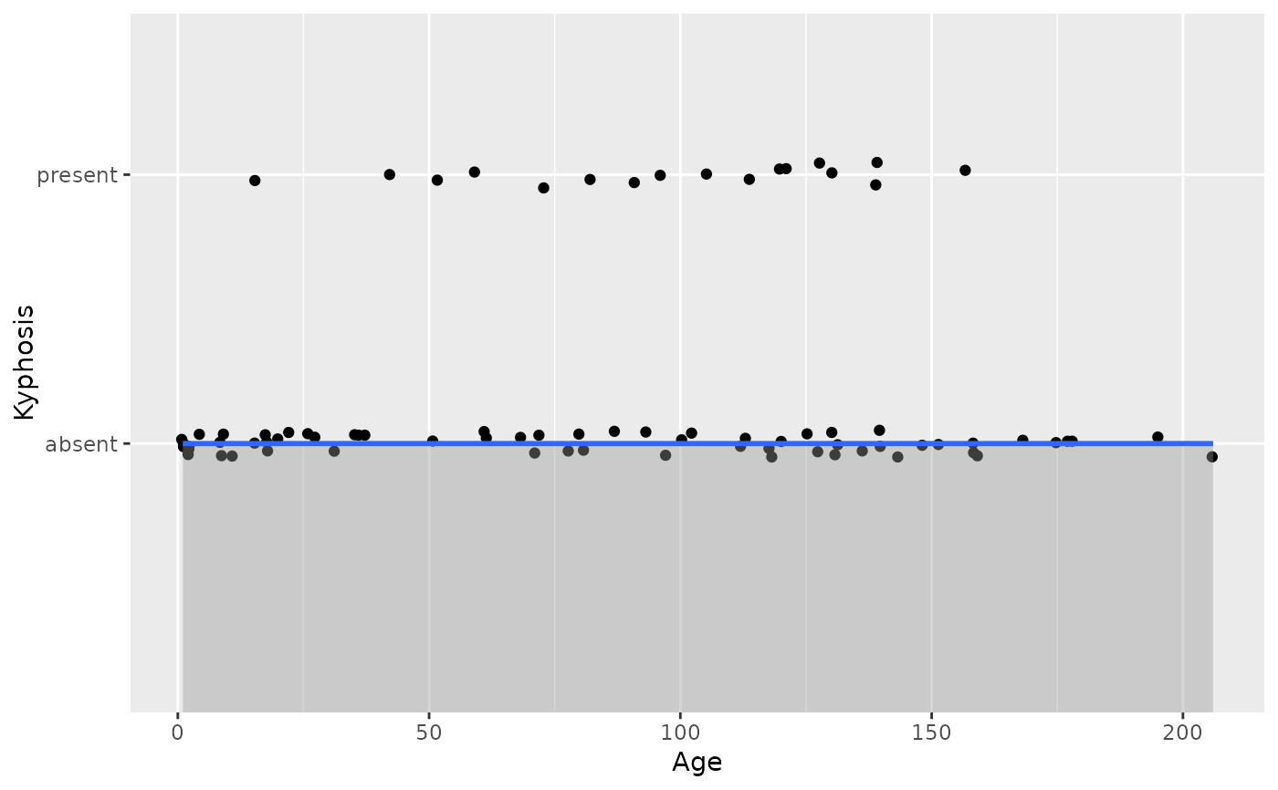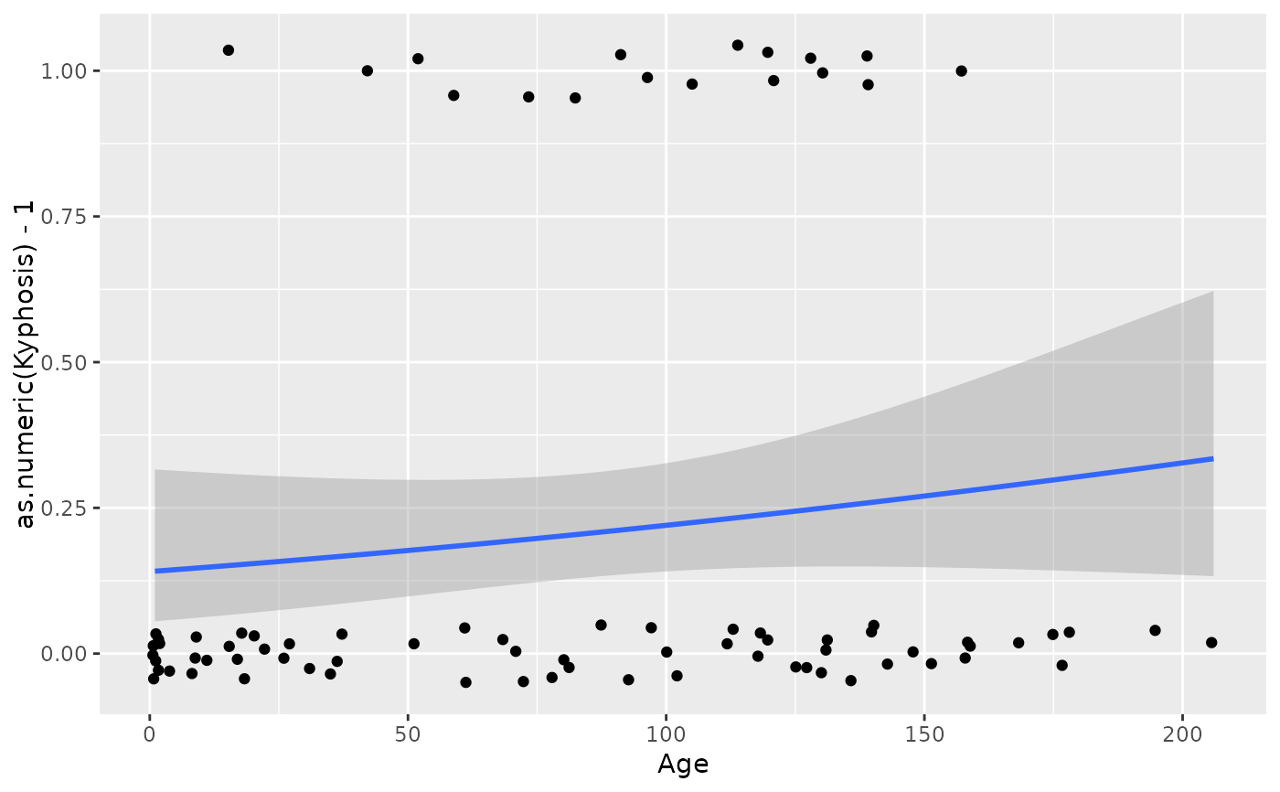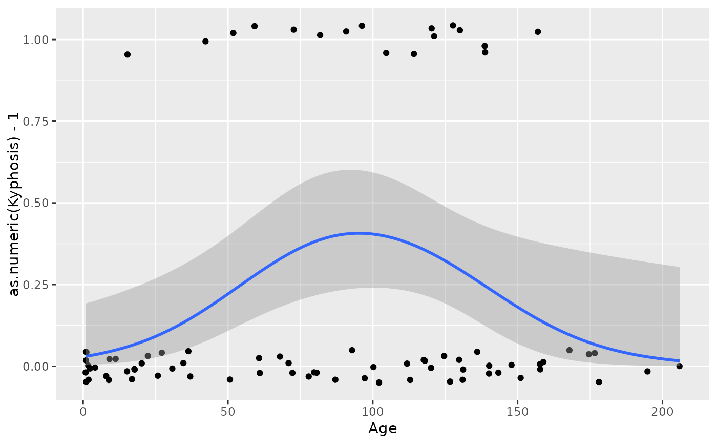 ggplot(rpart::kyphosis, aes(Age, as.numeric(Kyphosis) - 1)) +