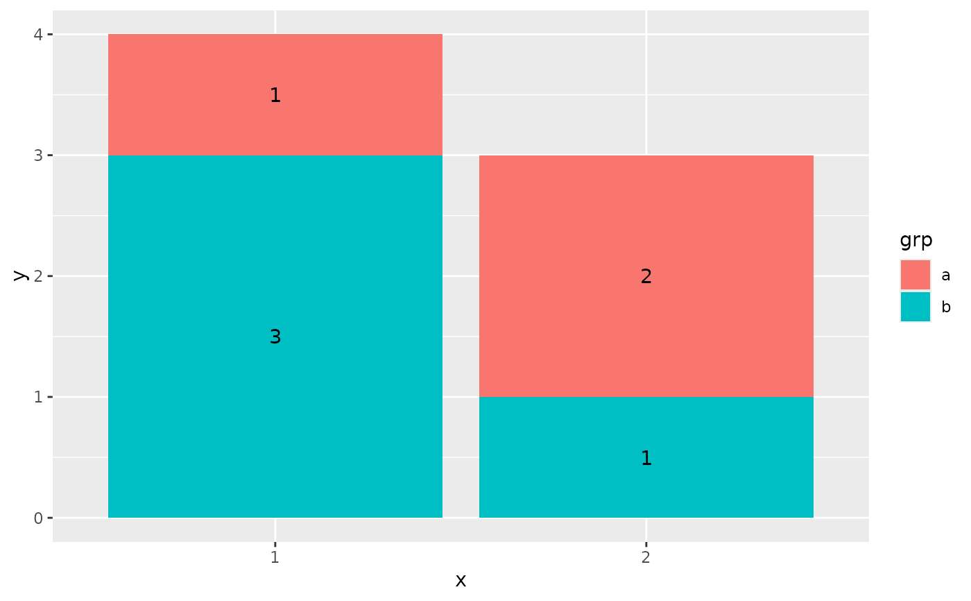 geom_text(aes(label = y), position = position_stack(vjust = 0.5))