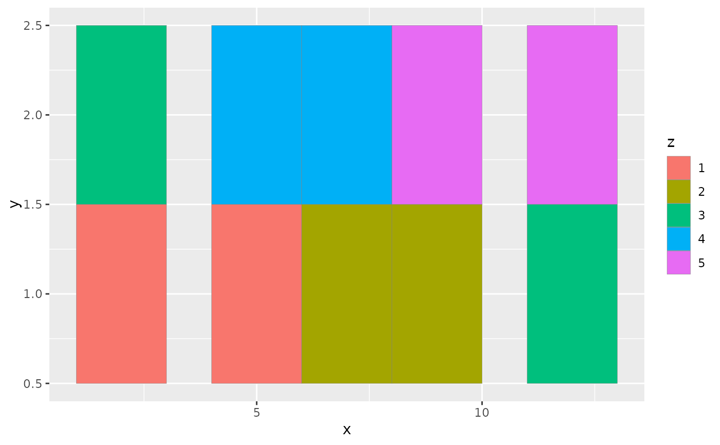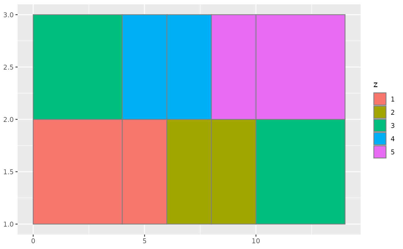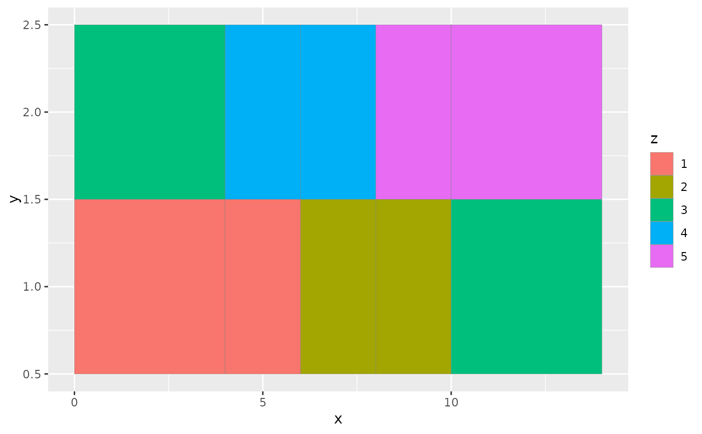 ggplot(df, aes(xmin = x - w / 2, xmax = x + w / 2, ymin = y, ymax = y + 1)) +