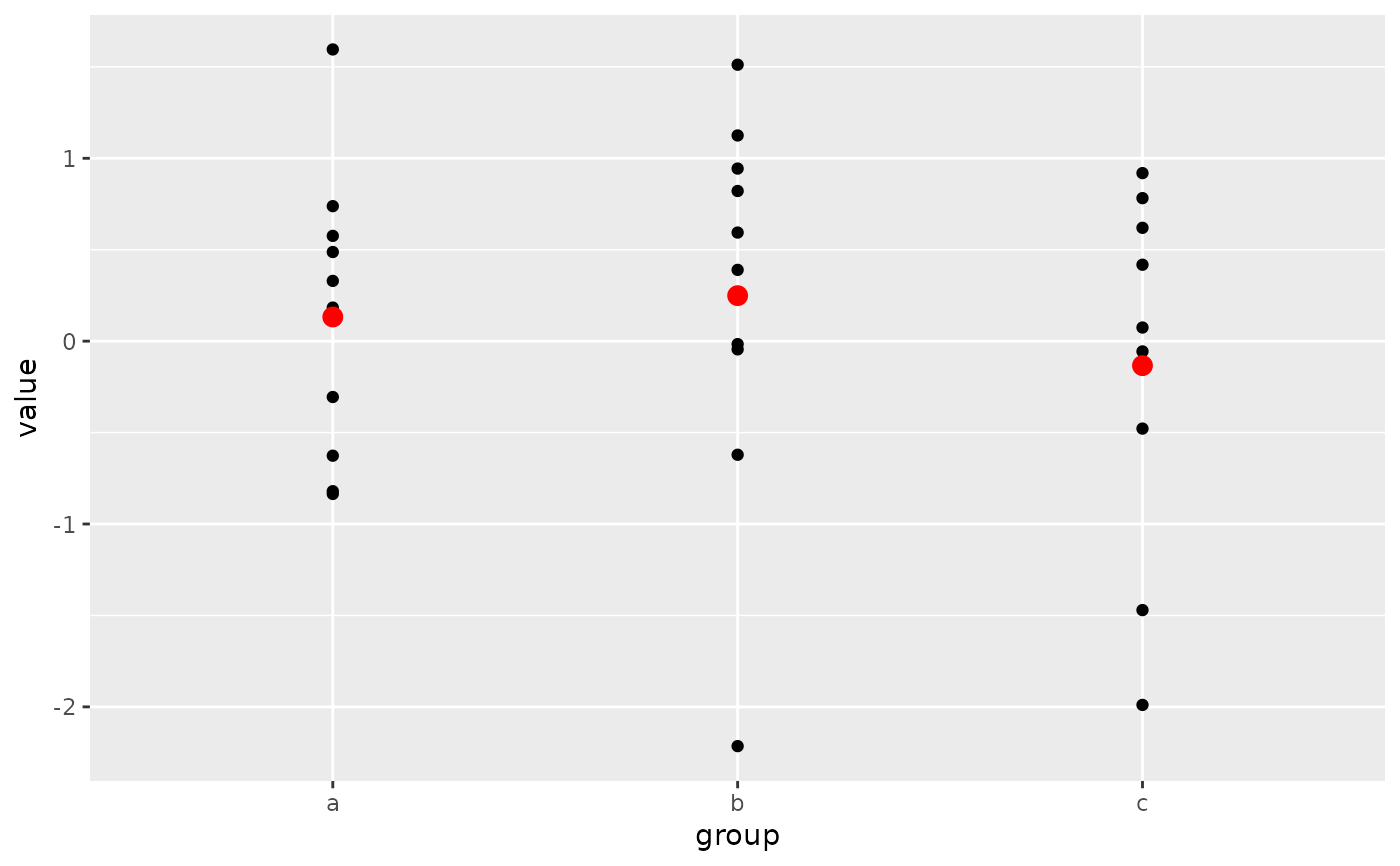 # second `geom_point()` layer re-uses the `x = group` aesthetic through