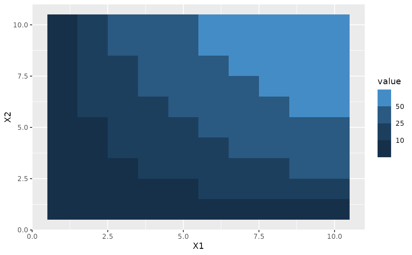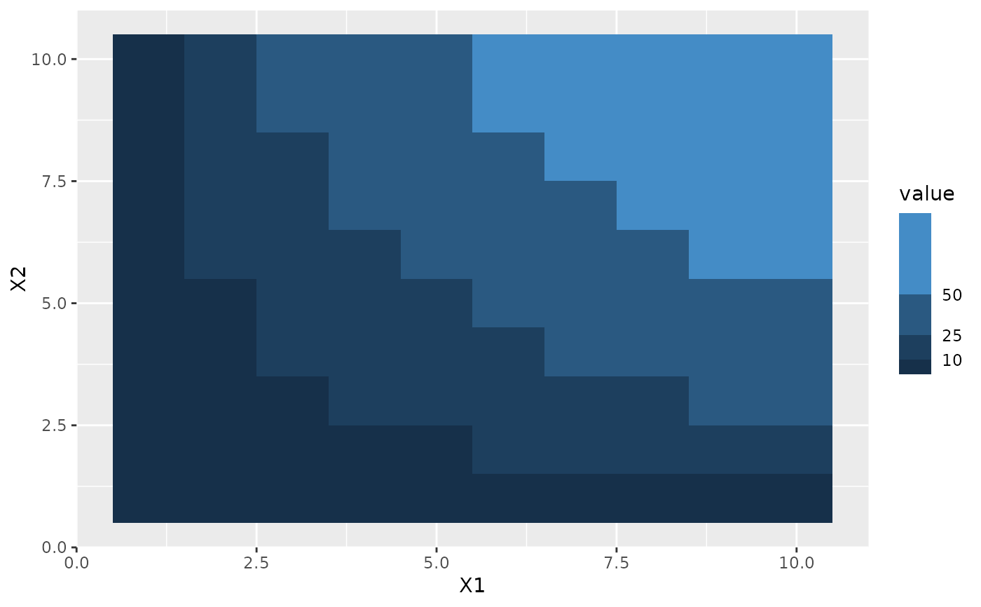 p <- ggplot(df, aes(X1, X2)) + geom_tile(aes(fill = value))