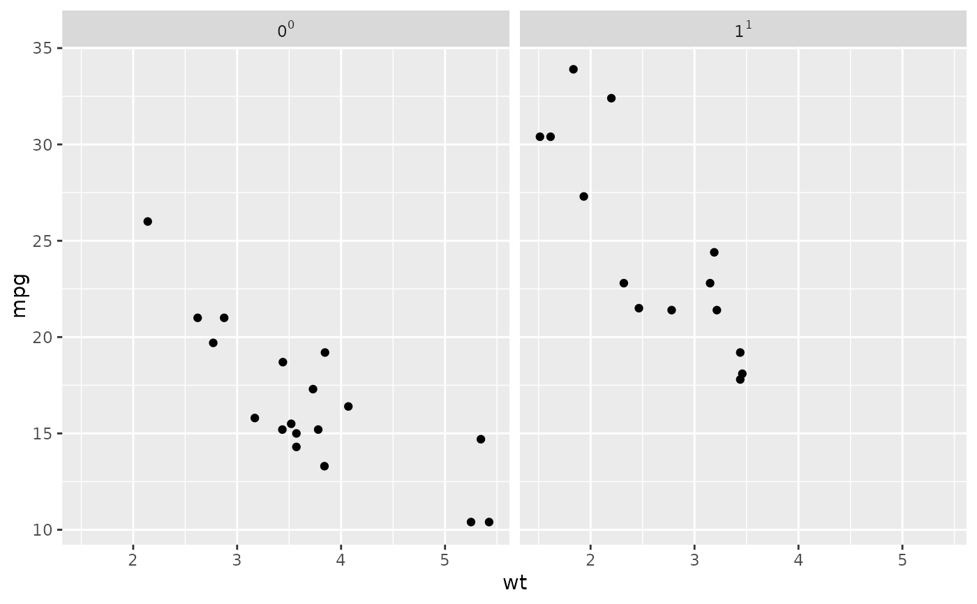 p + facet_grid(. ~ vs, labeller = label_bquote(cols = .(vs) ^ .(vs)))