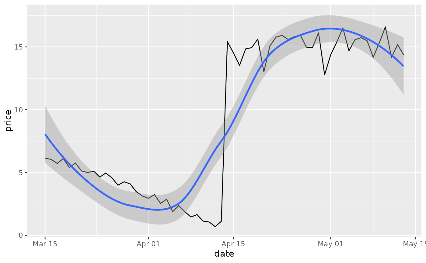 price = c(rnorm(30, mean = 15), runif(30) + 0.2 * (1:30))