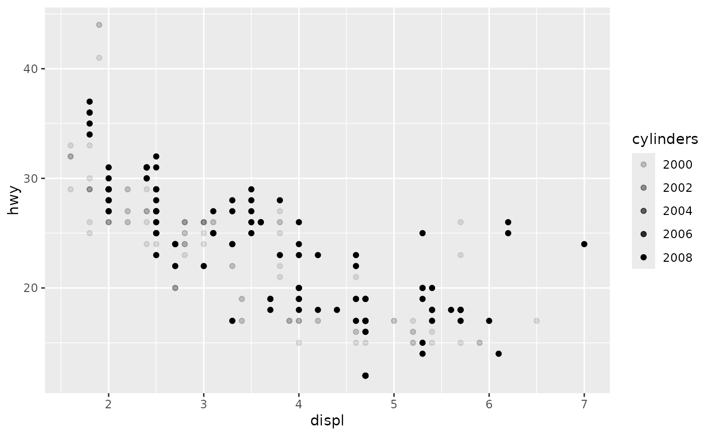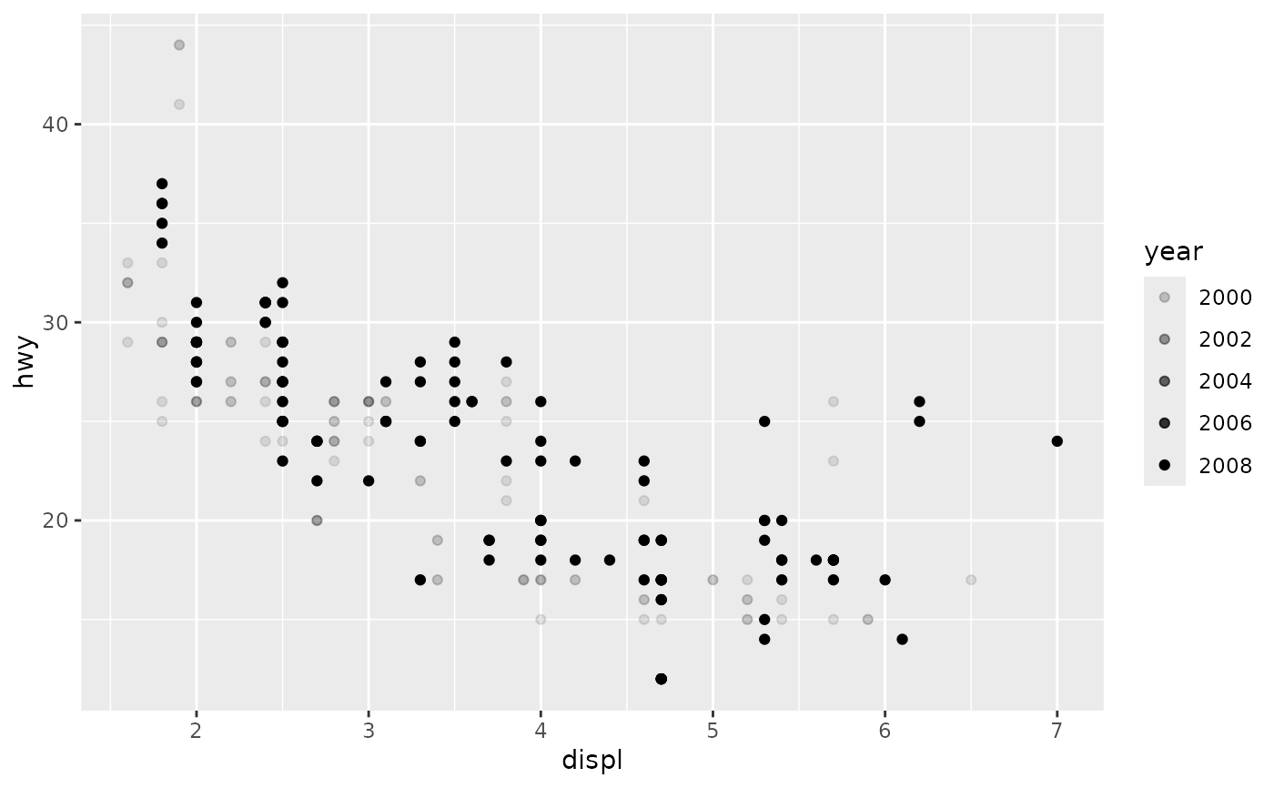 Other alpha scales: scale_alpha_manual(), scale_alpha_identity().