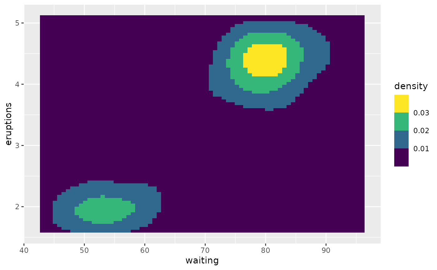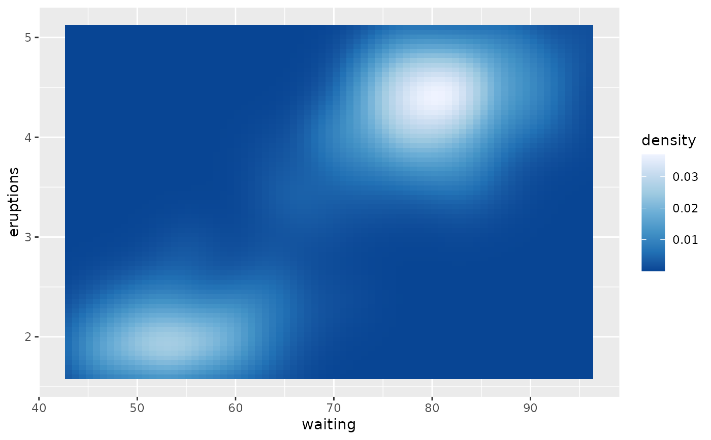 v <- ggplot(faithfuld, aes(waiting, eruptions, fill = density)) +
