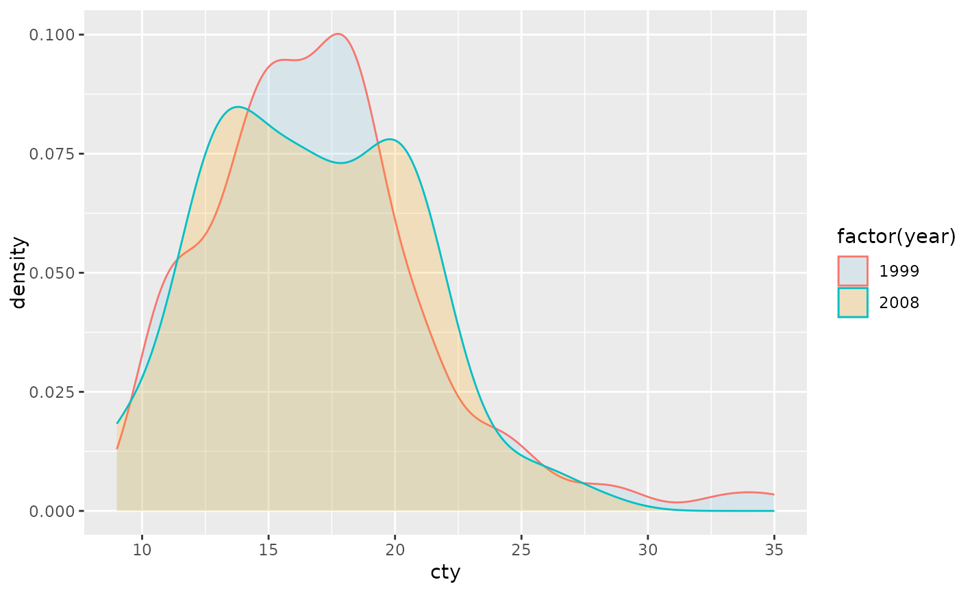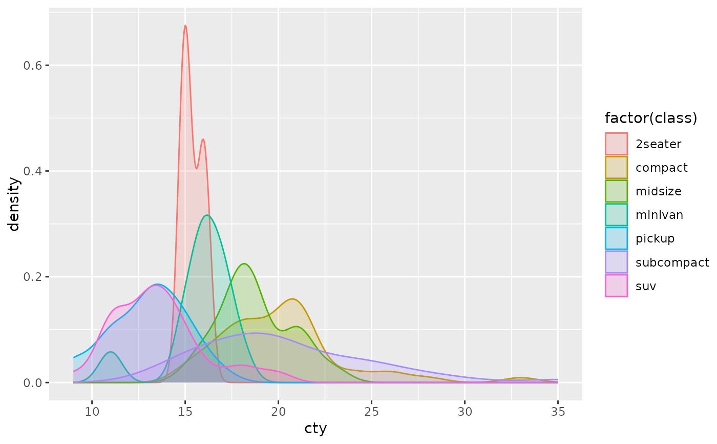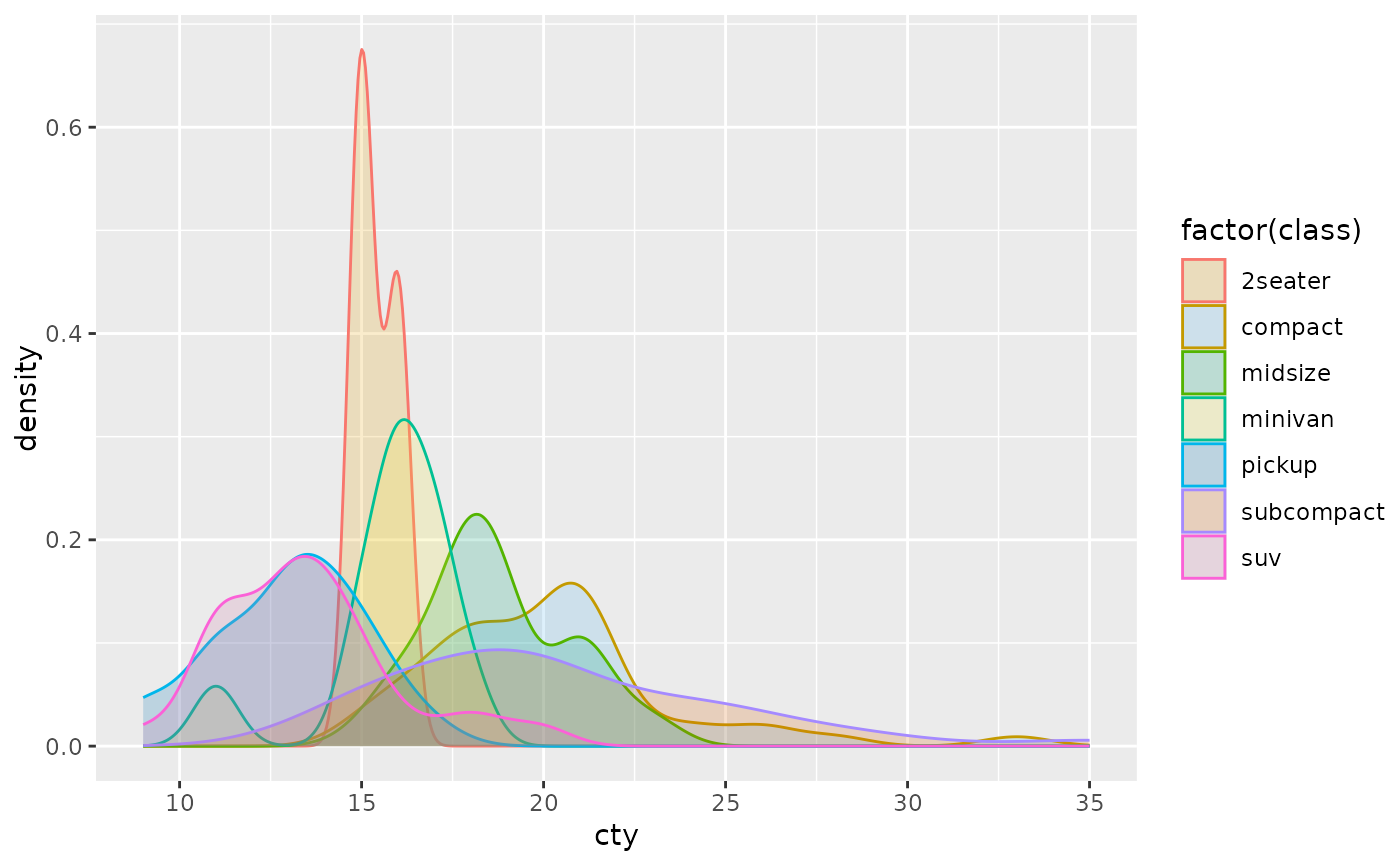 ggplot(mpg, aes(cty, colour = factor({{var}}), fill = factor({{var}}))) +