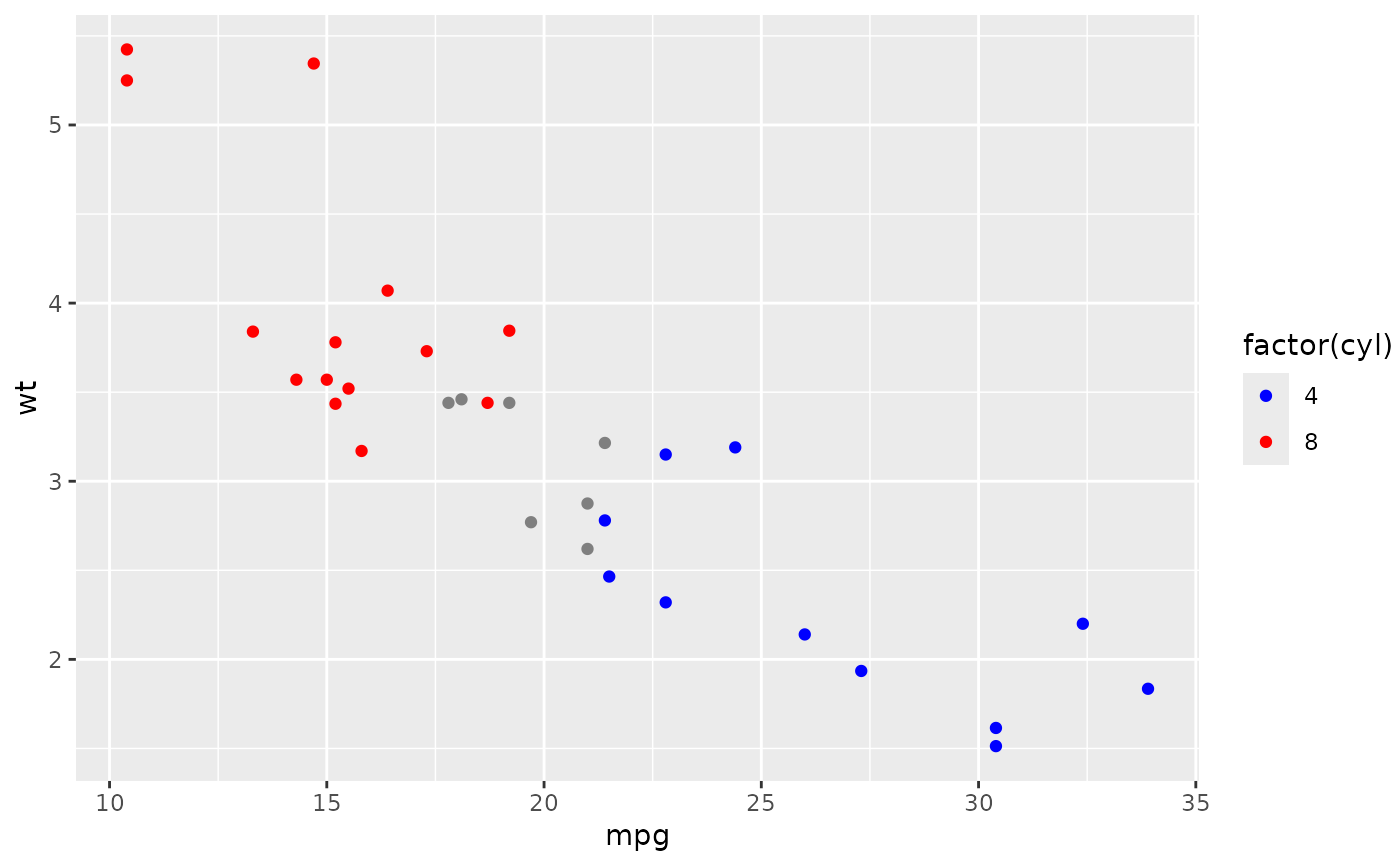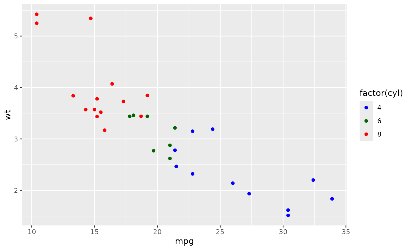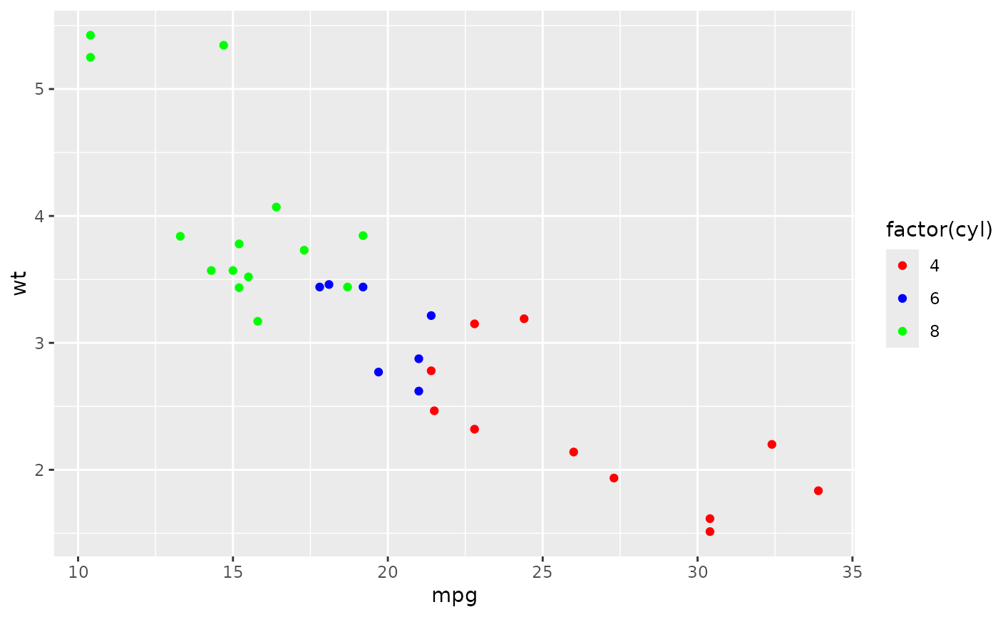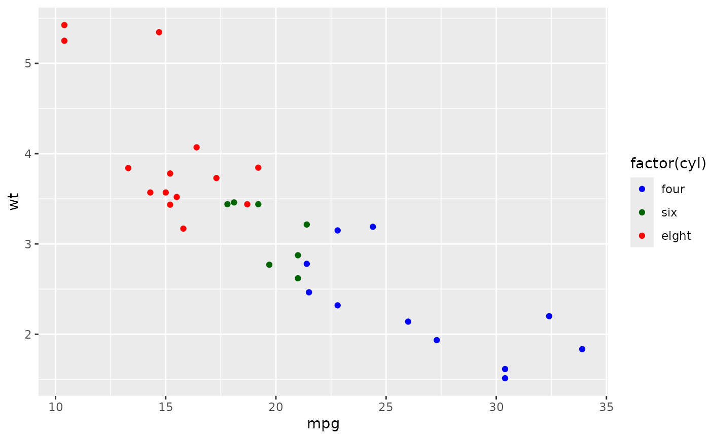 geom_point(aes(colour = factor(cyl)))