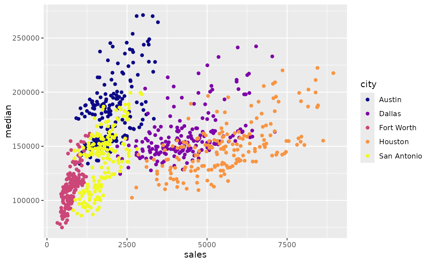 (d <- ggplot(data = txsamp, aes(x = sales, y = median)) +
