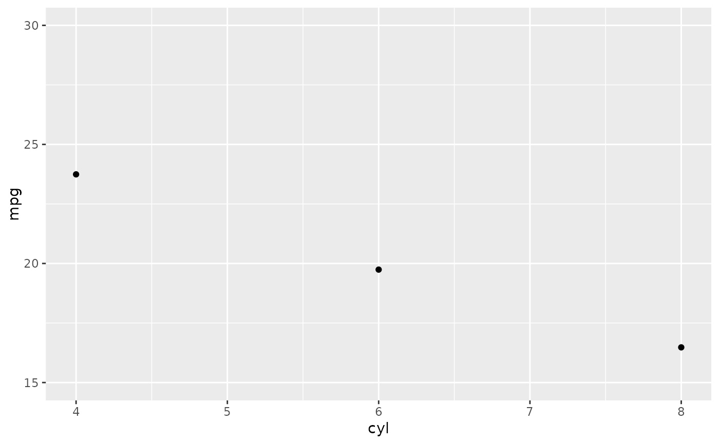 d <- ggplot(mtcars, aes(cyl, mpg)) + geom_point()