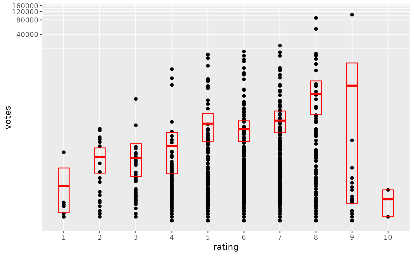 ggplot(mov, aes(x = factor(round(rating)), y = votes)) +
