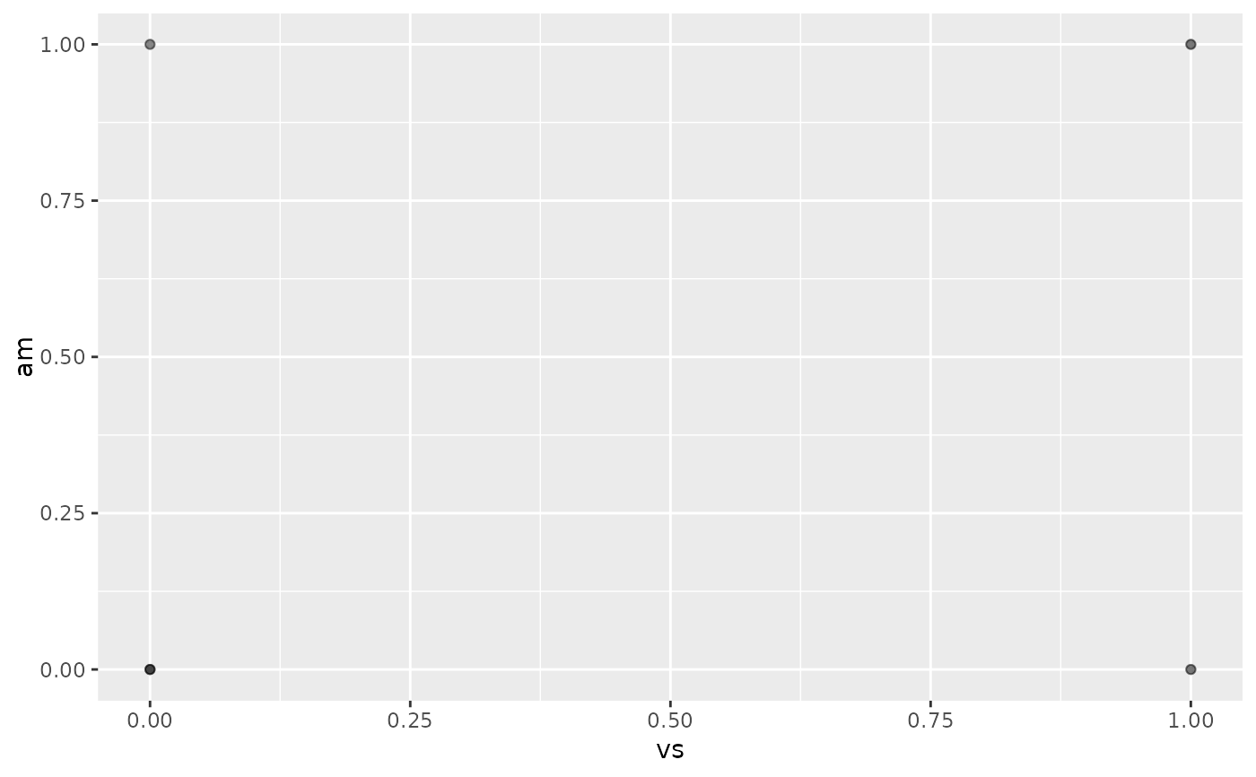 ggplot(mtcars, aes(vs, am)) +