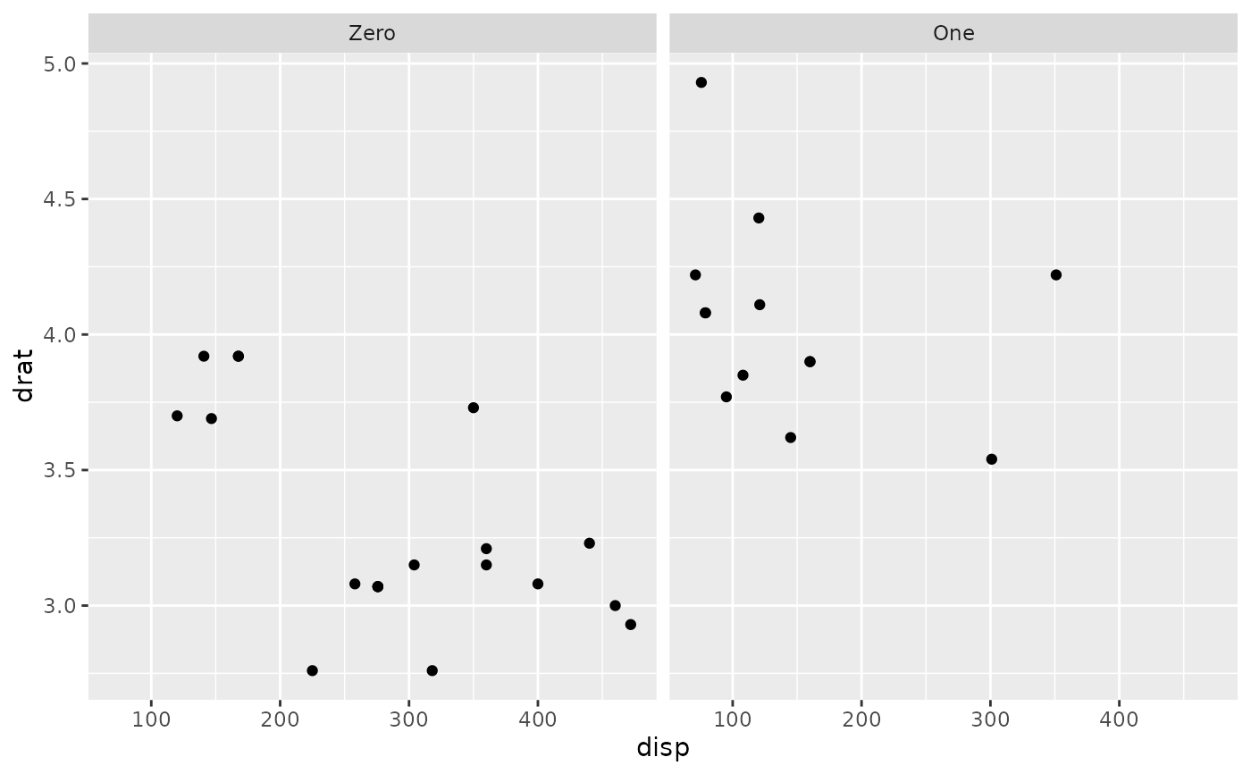 p <- ggplot(mtcars, aes(disp, drat)) + geom_point()
