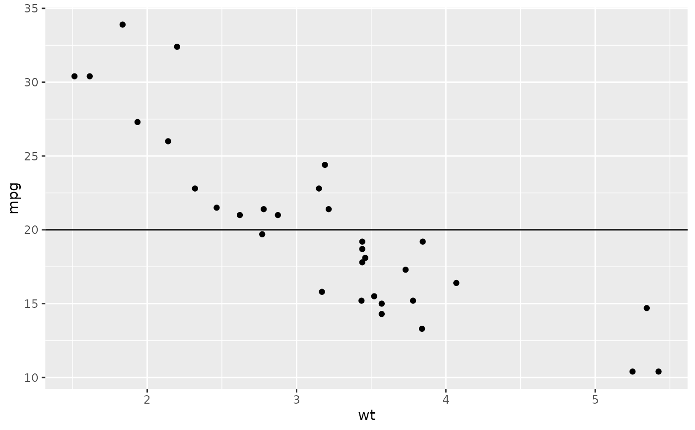 p <- ggplot(mtcars, aes(mpg, wt)) +