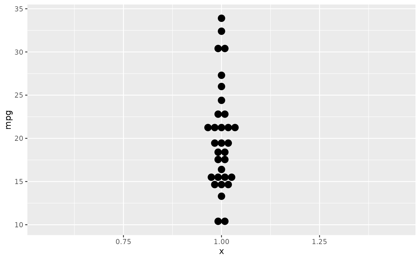 ggplot(mtcars, aes(x = 1, y = mpg)) +