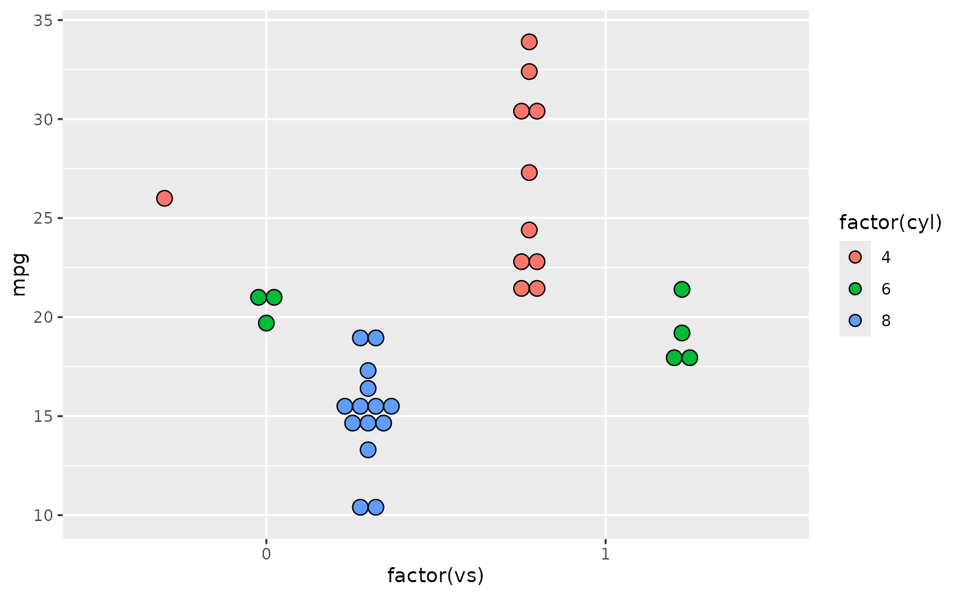 geom_dotplot(binaxis = "y", stackgroups = TRUE, binwidth = 1, method = "histodot")