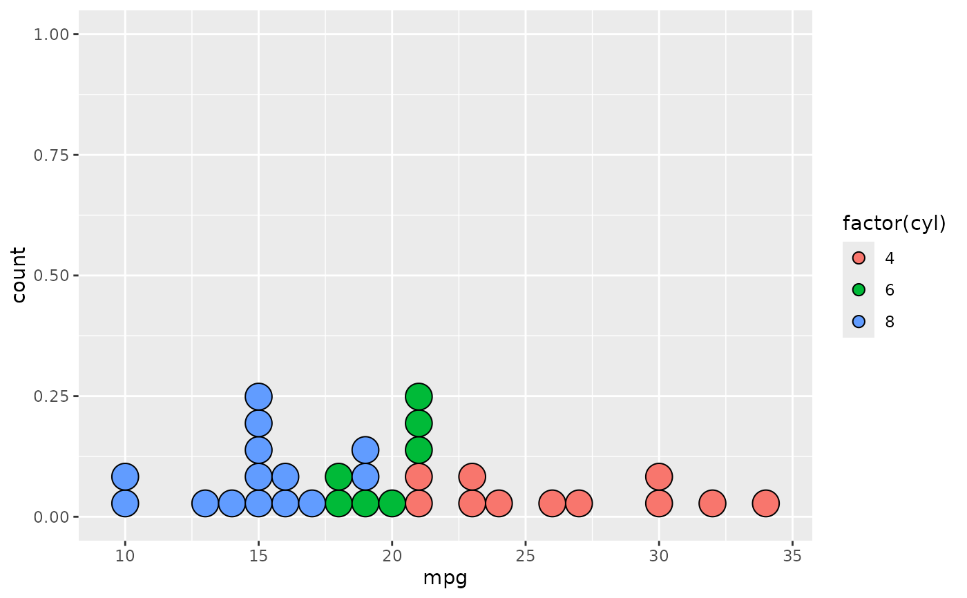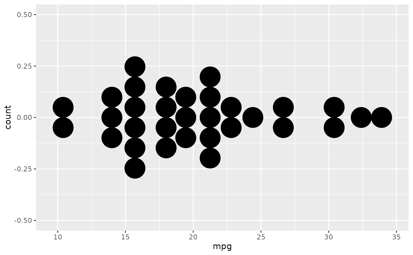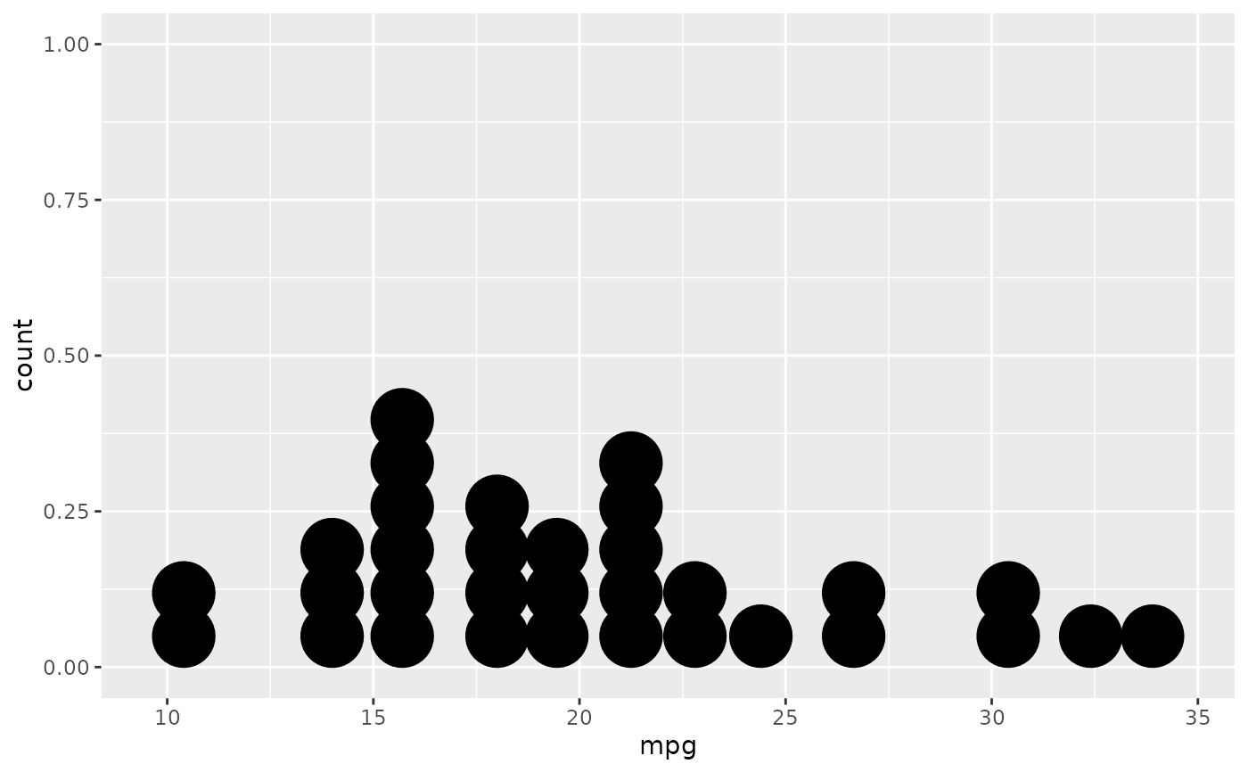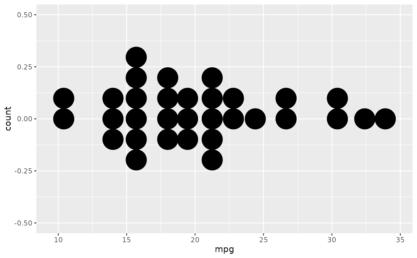 geom_dotplot(stackgroups = TRUE, binwidth = 1, method = "histodot")