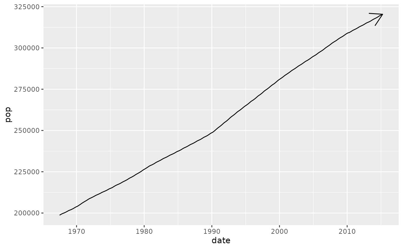 geom_path() understands the following aesthetics. Required aesthetics are displayed in bold and defaults are displayed for optional aesthetics: