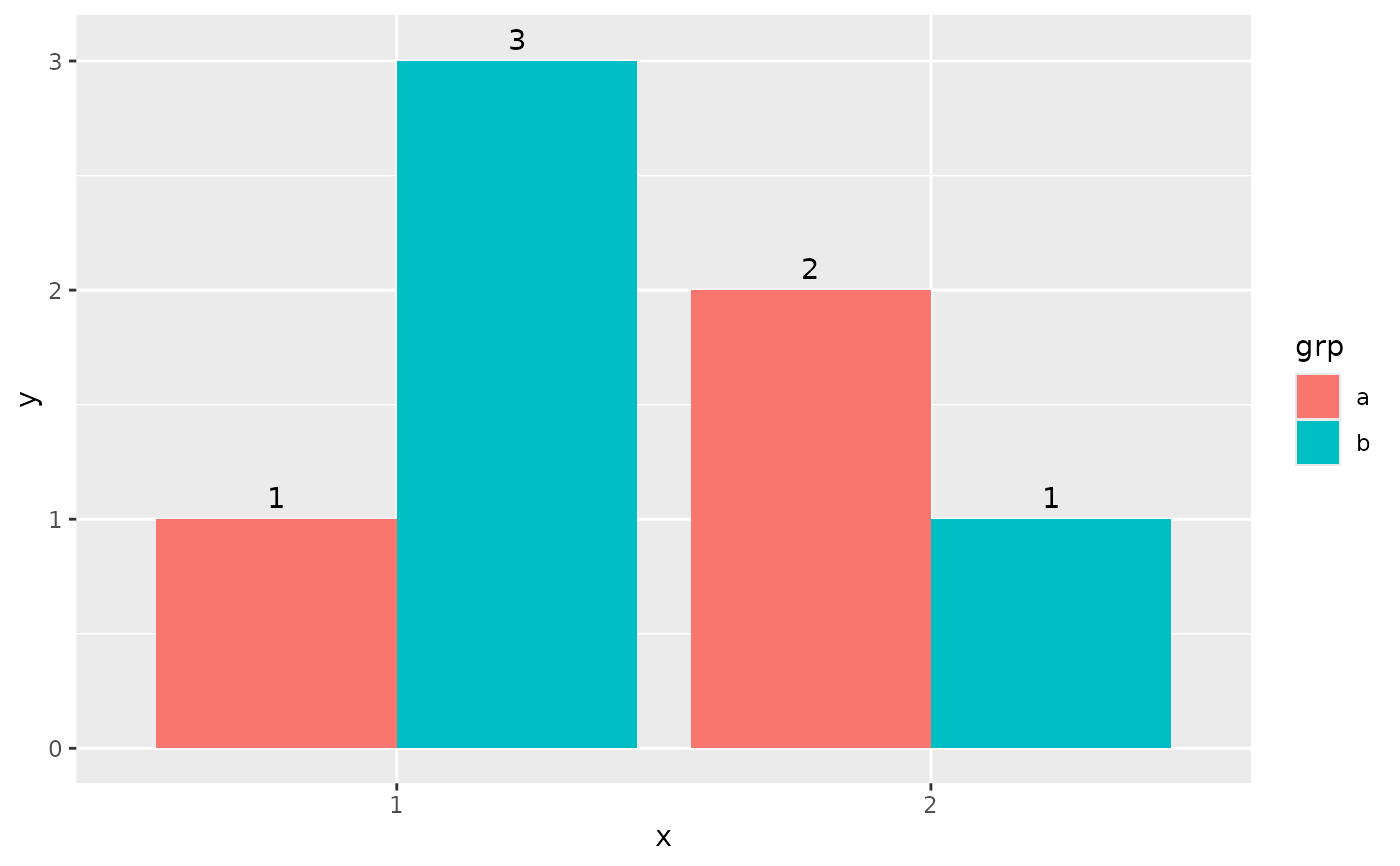 geom_text(aes(label = y), position = position_dodge(0.9))