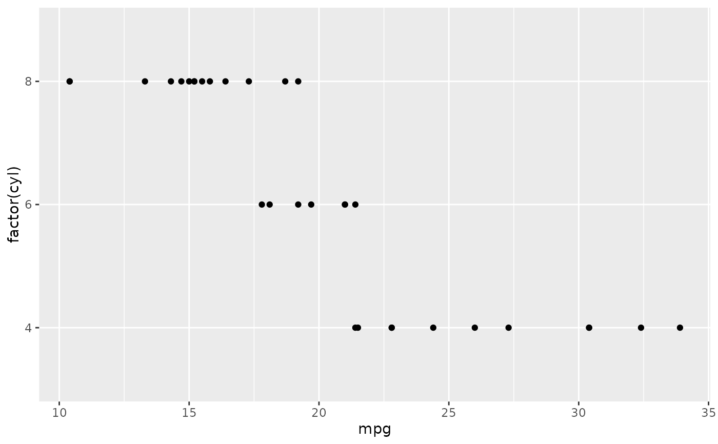 cars <- ggplot(mtcars, aes(mpg, factor(cyl)))