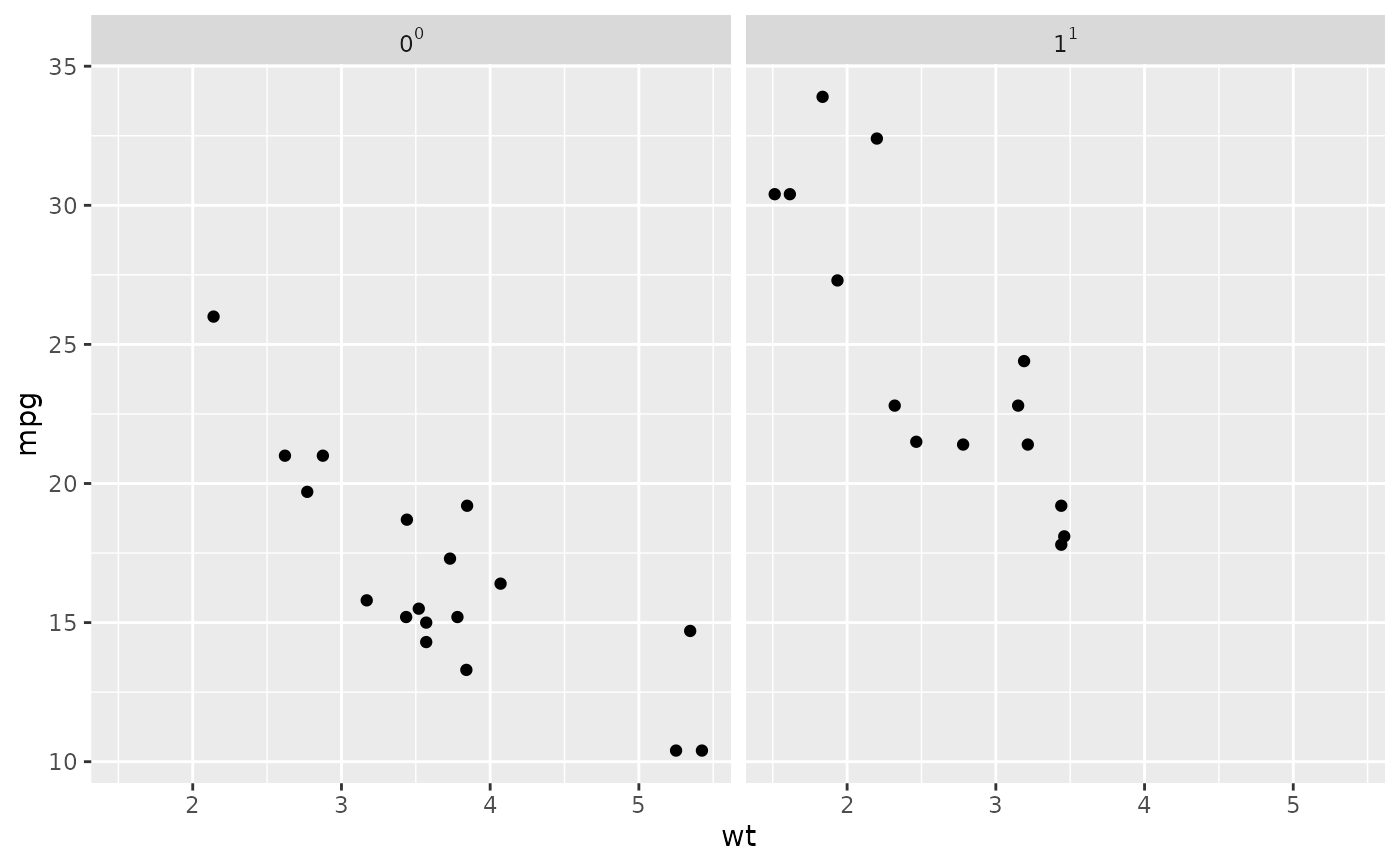 p + facet_grid(. ~ vs, labeller = label_bquote(cols = .(vs) ^ .(vs)))