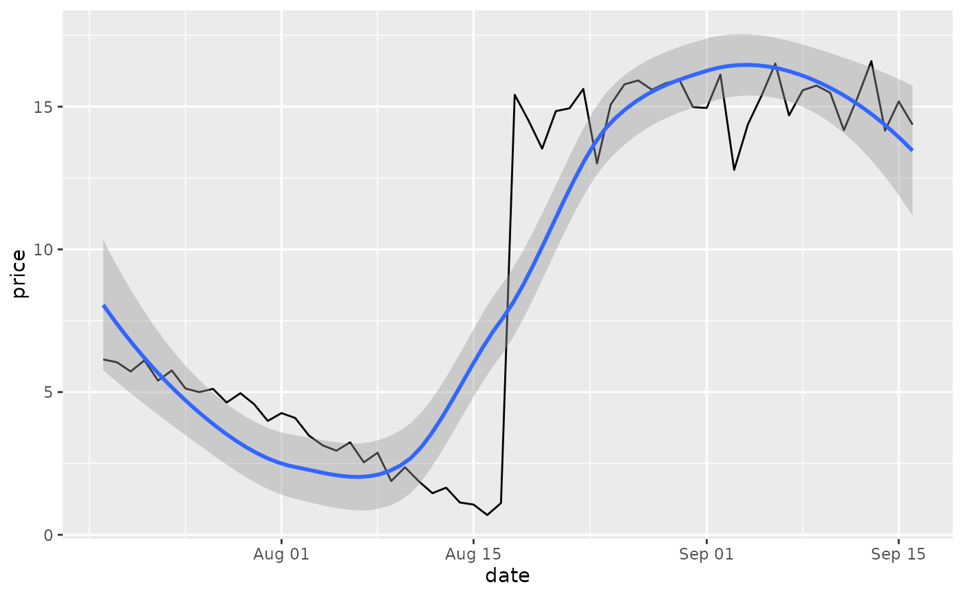 p <- ggplot(df, aes(date, price)) +