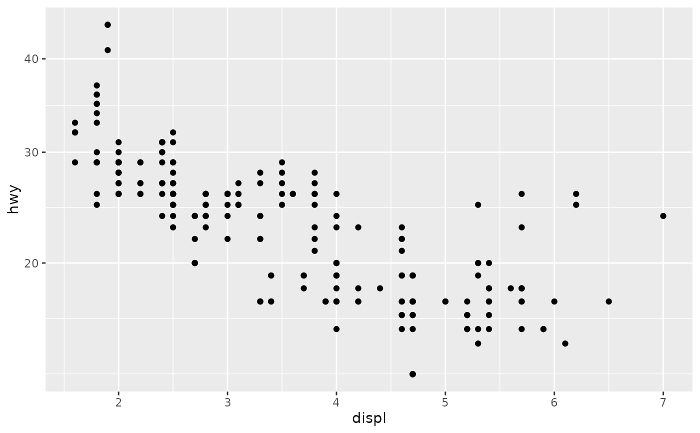 p1 <- ggplot(mpg, aes(displ, hwy)) +