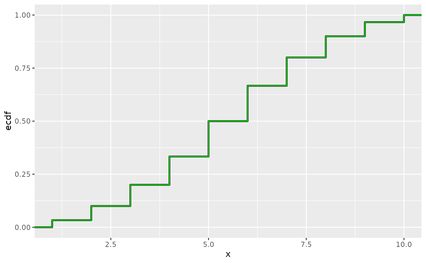 stat_ecdf() understands the following aesthetics. Required aesthetics are displayed in bold and defaults are displayed for optional aesthetics: