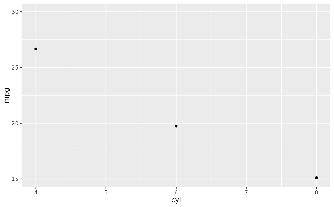 d <- ggplot(mtcars, aes(cyl, mpg)) + geom_point()