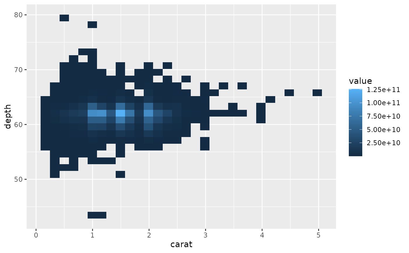 d <- ggplot(diamonds, aes(carat, depth, z = price))