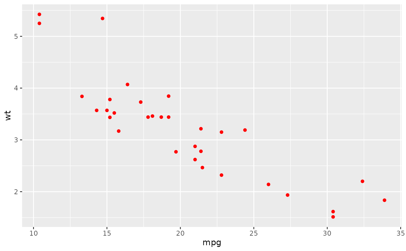 ggplot(mtcars, aes(mpg, wt)) + geom_point()