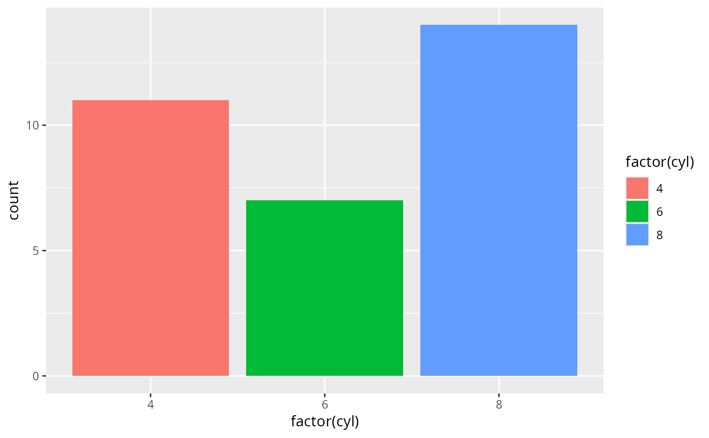 p <- ggplot(mtcars, aes(factor(cyl)))