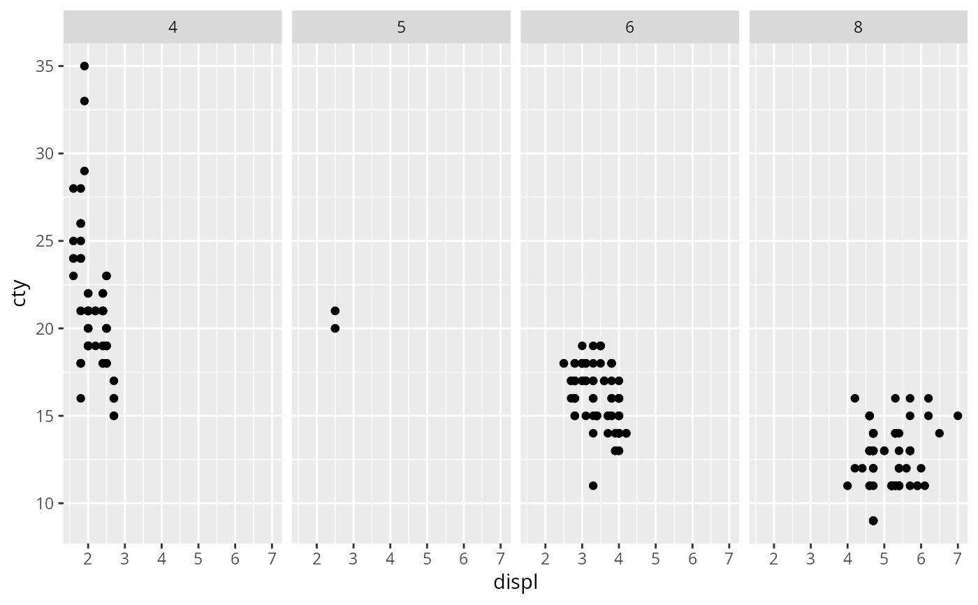 facet_grid(cols = vars(cyl)) +