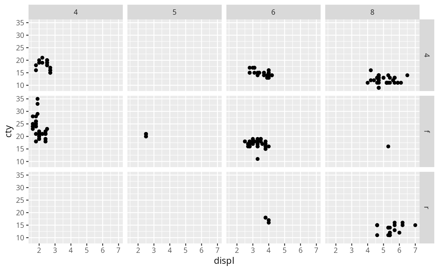 p + facet_grid(vars(drv), vars(cyl))