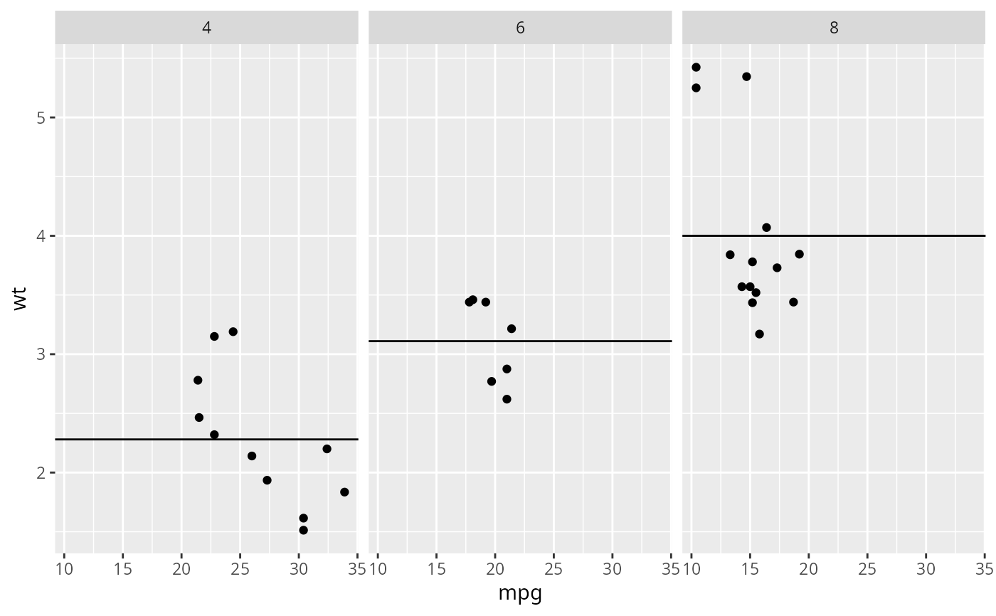 mean_wt <- data.frame(cyl = c(4, 6, 8), wt = c(2.28, 3.11, 4.00))
