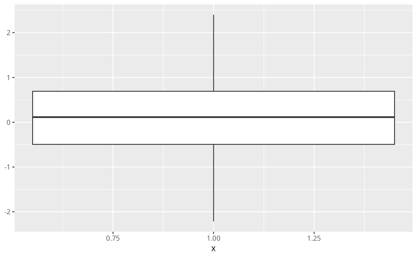 TRUE) or discard (FALSE) outliers from the plot. Hiding or discarding outliers can be useful when, for example, raw data points need to be displayed on top of the boxplot. By discarding outliers, the axis limits will adapt to the box and whiskers only, not the full data range. If outliers need to be hidden and the axes needs to show the full data range, please useoutlier.shape = NAinstead.- outlier.colour, outlier.color, outlier.fill, outlier.shape, outlier.size, outlier.stroke, outlier.alpha