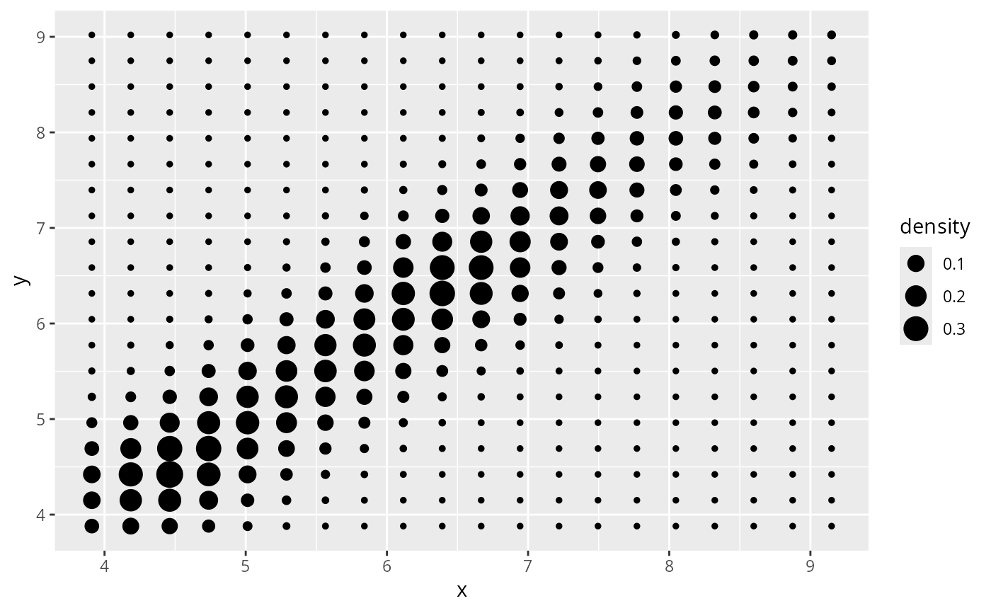 d + stat_density_2d(geom = "point", aes(size = after_stat(density)), n = 20, contour = FALSE)