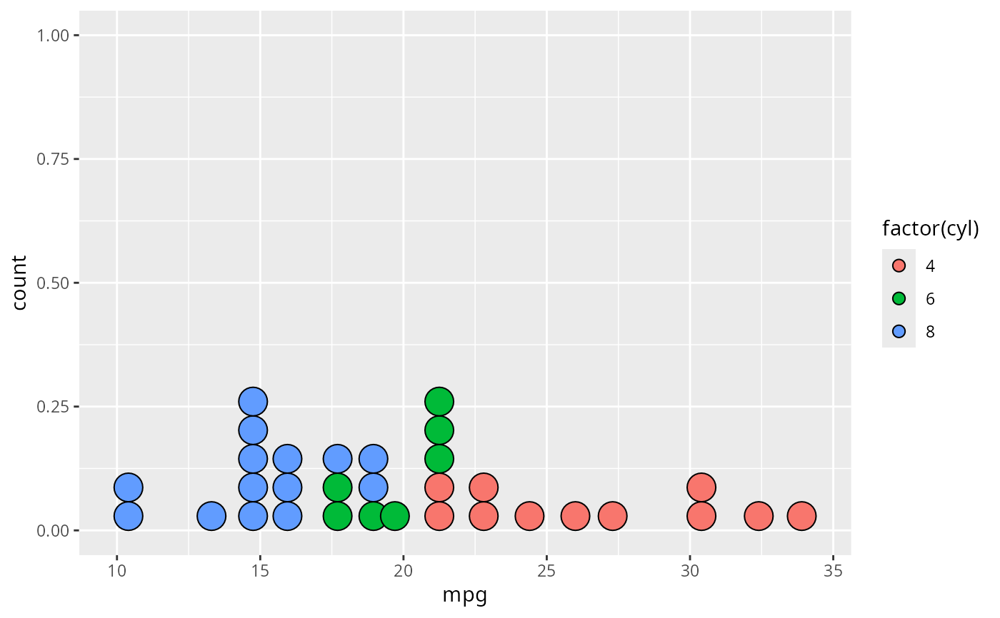 geom_dotplot(stackgroups = TRUE, binwidth = 1, method = "histodot")