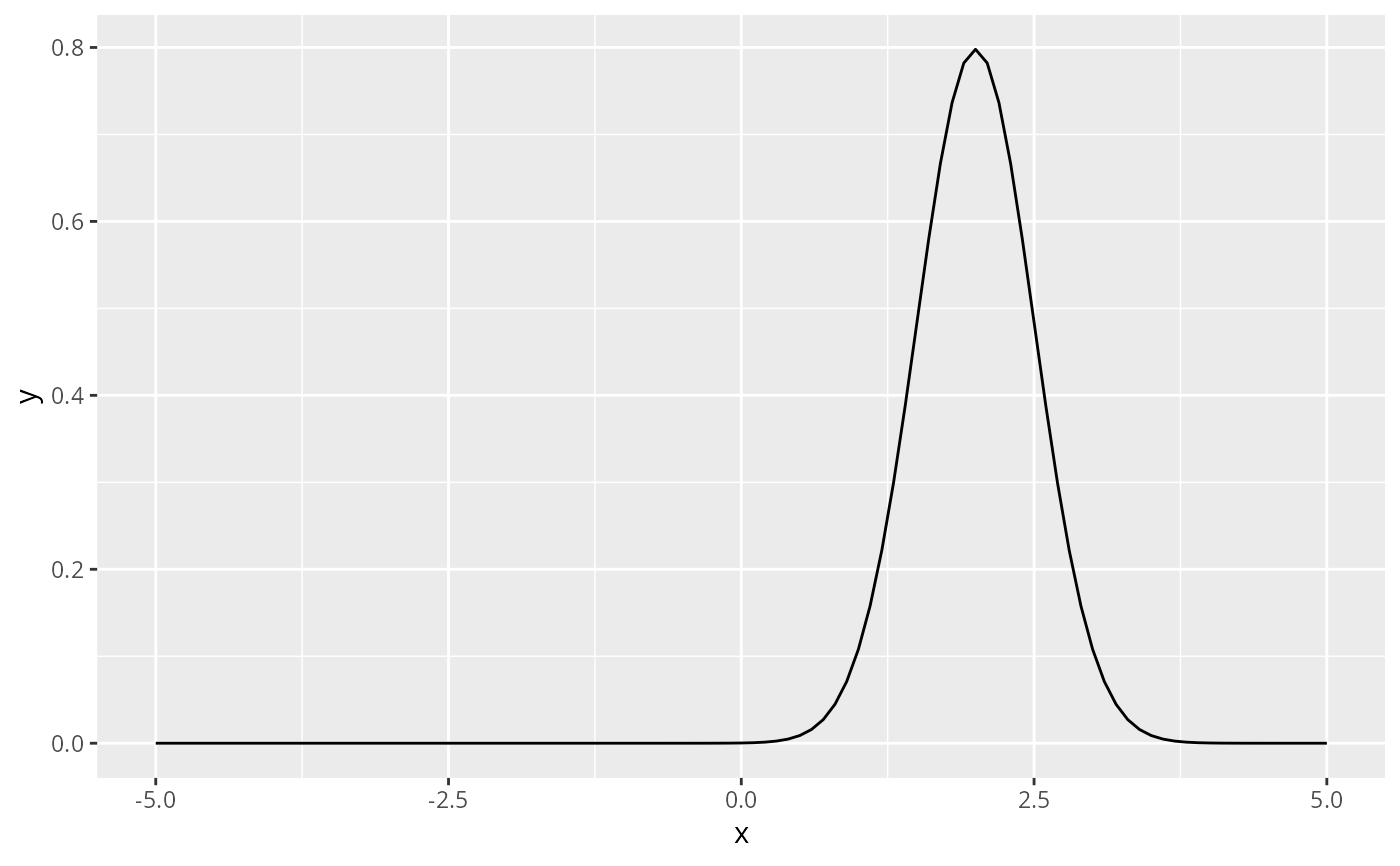 base + geom_function(fun = dnorm, args = list(mean = 2, sd = .5))
