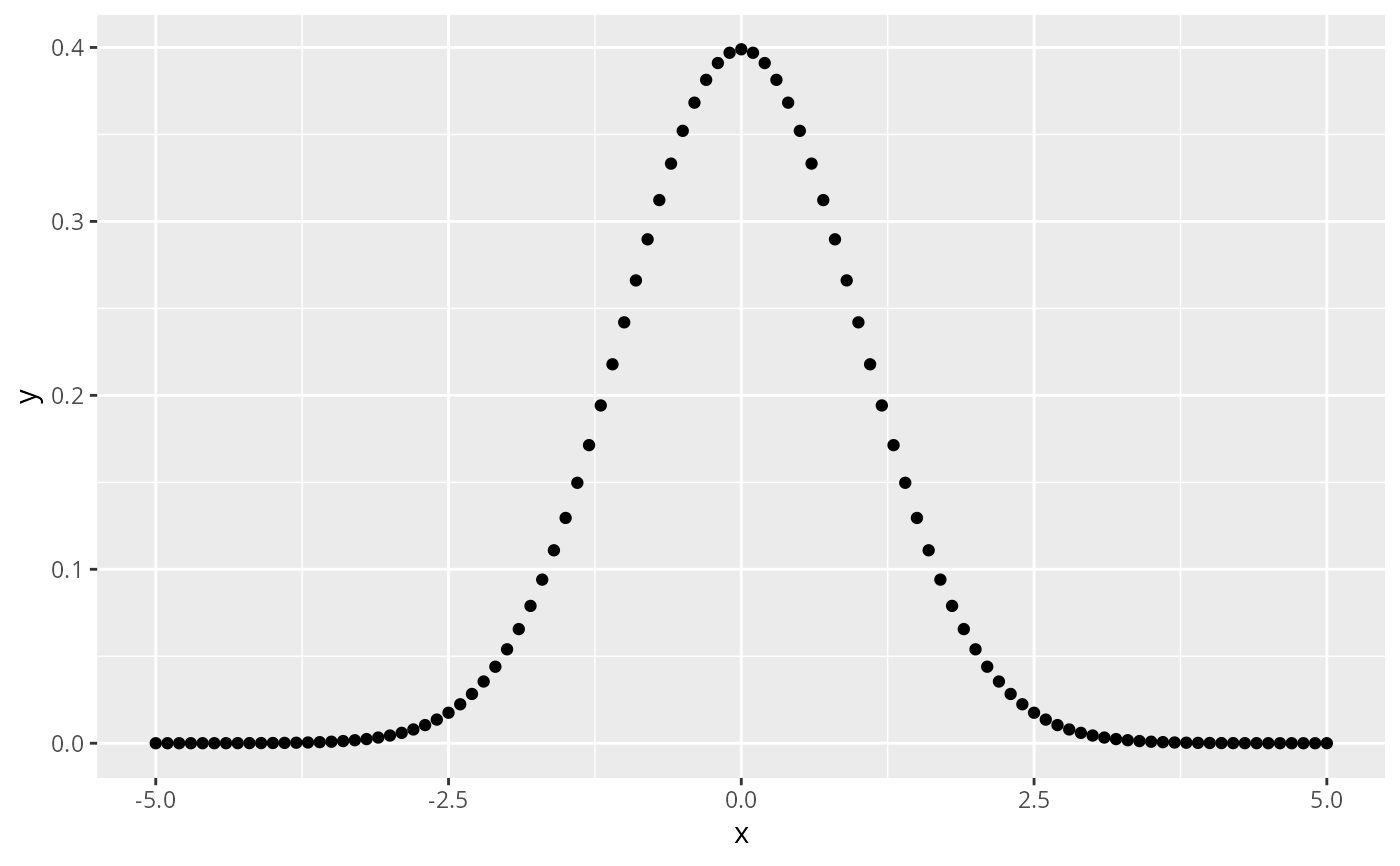 base + stat_function(fun = dnorm, geom = "point")
